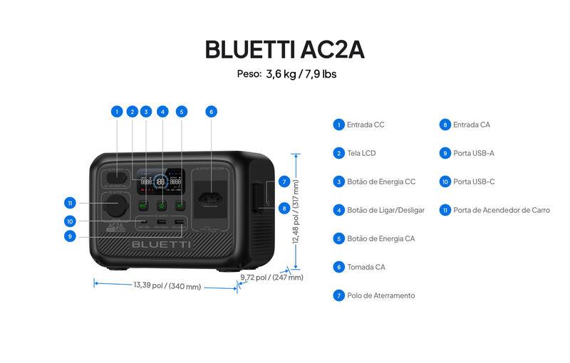 BLUETTI AC2A Estação de Energia Portátil | 300 W 204 Wh
